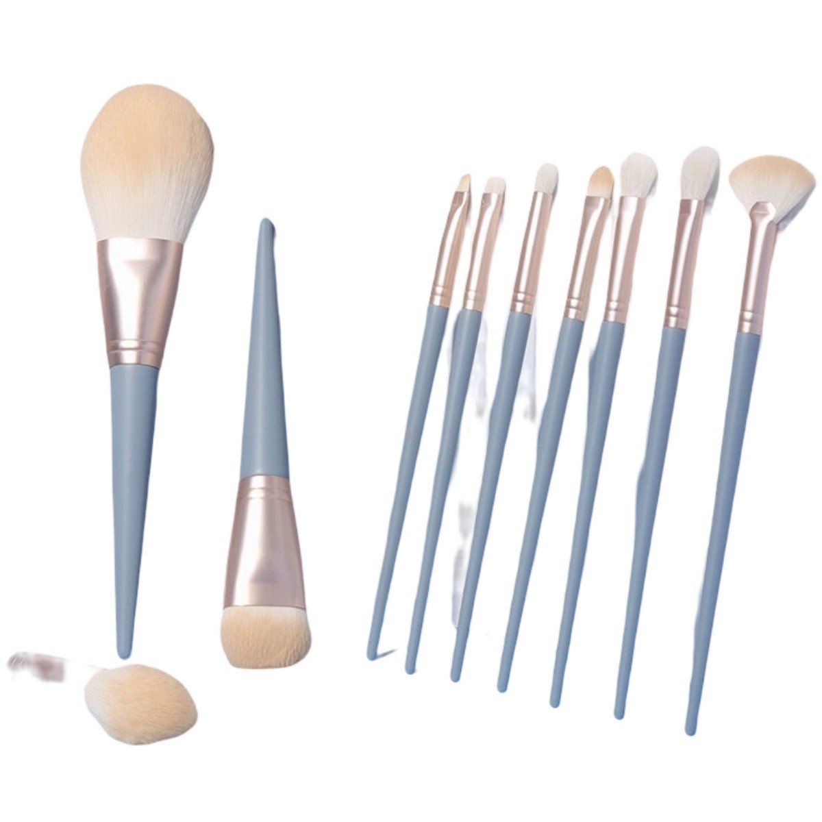 1.Comprehensive Makeup Brush Set : This set includes 10 makeup brushes,containing blush brush, foundation brush, eye shadow brush, eye smudge brush, nasal shadow brush, eyebrow brush, lip brush. One set meets all you need.